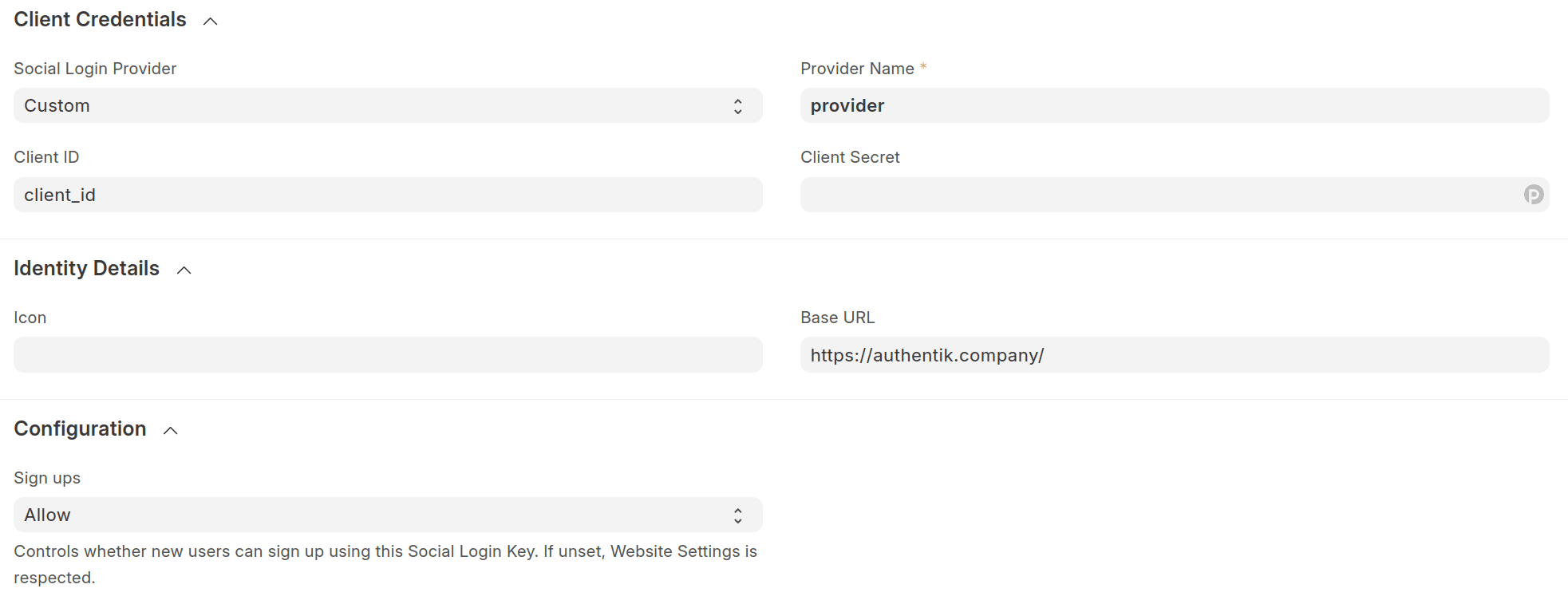 - Client Secret: Enter the Client Secret from the authentik wizard.